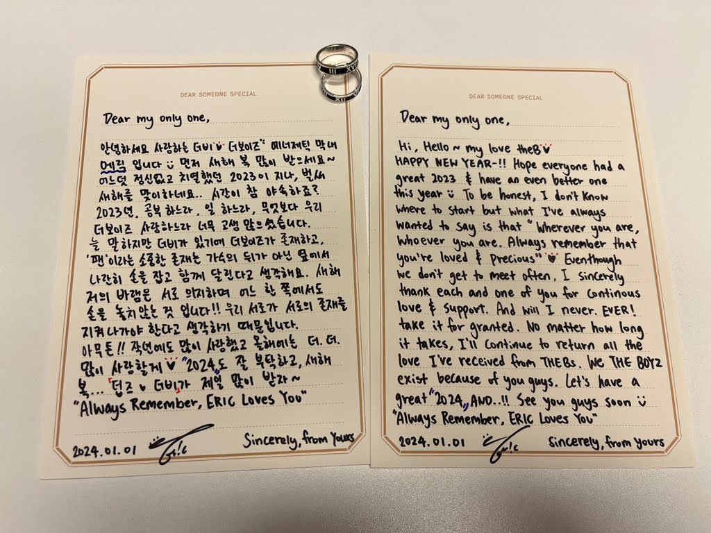 Hello, my love TheB ❤️ It's THE BOYZ's energetic maknae Eric :) First, happy new year~ Before we knew it, the 2023 we spent so busily and fiercely is over, and it's already the new year.. Time is kinda merciless, isn't it?