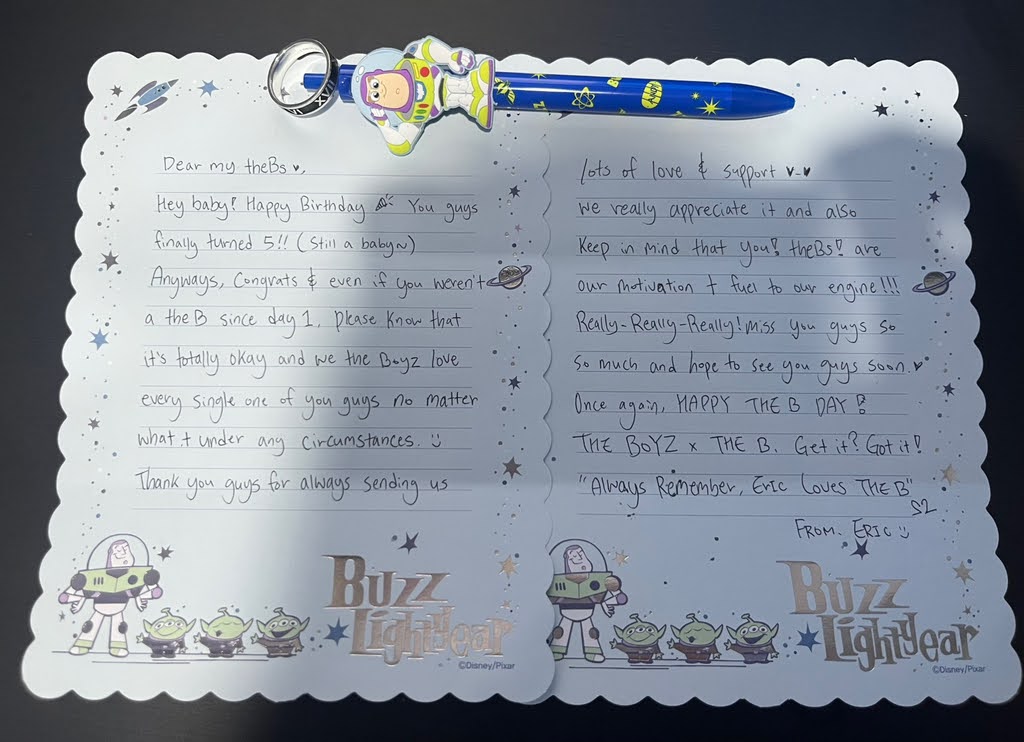 Hi, TheB!! It's THE BOYZ's energy maknae Eric :) First, happy 6th birthday 🎉 Time goes by so mercilessly fast... Right?